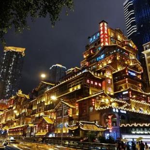 关于网红景点洪崖洞Tips: 1、亮灯时间为8:00-11:00,所以不要去早了 2、洪崖洞不收门票但是限流,需要找昵称提前预约好 3、和卡通人物拍照要收费